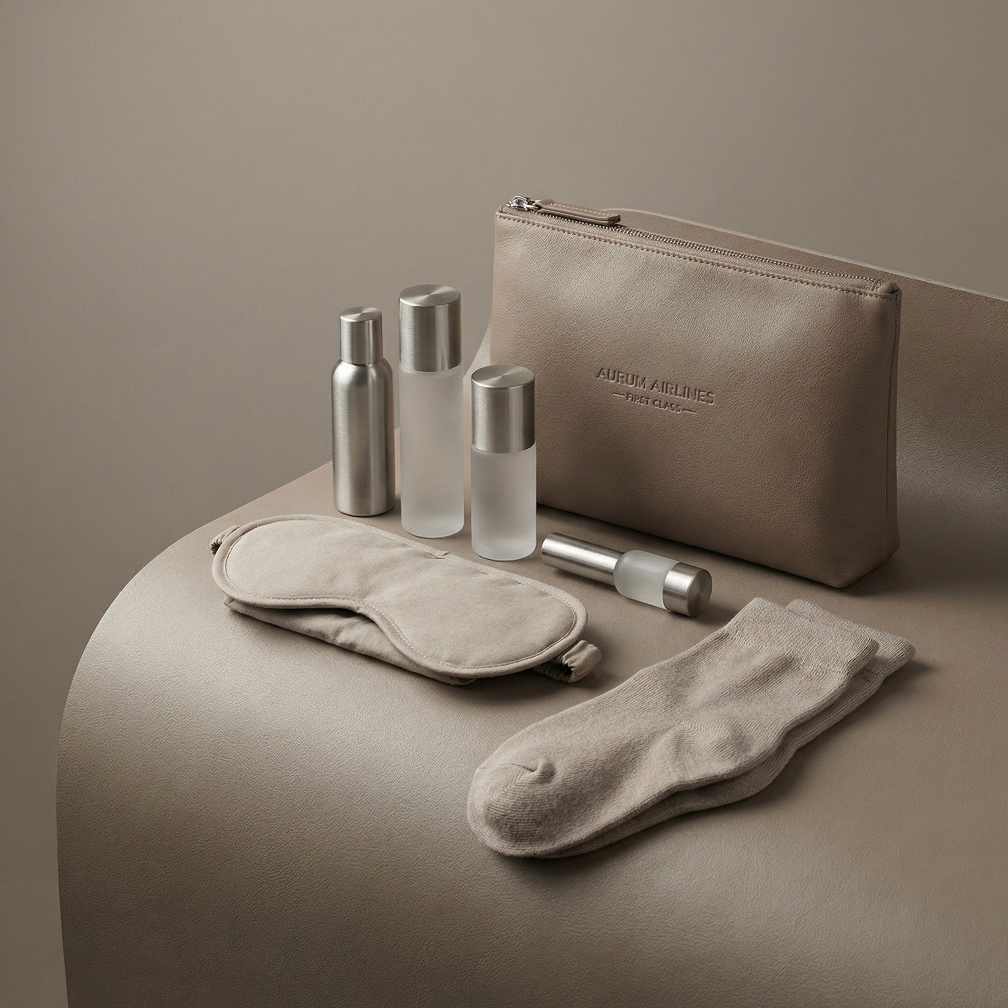 Besppoke toiletries developed for airline cabins, designed for comfort, safety, and seamless service at altitude.